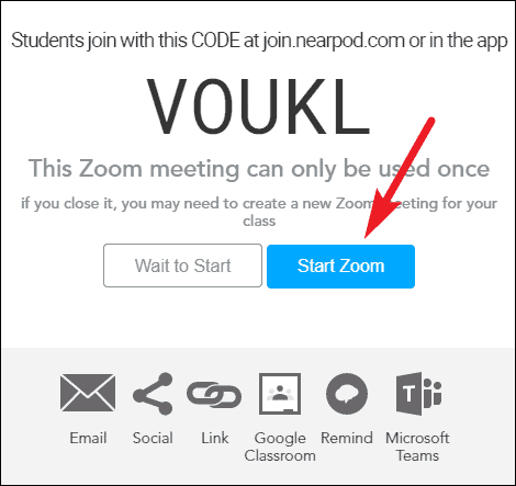Zoom desktop client will open and the meeting will begin. Share the Nearpod lesson code with your students so they can join the lesson and the Zoom meeting.
