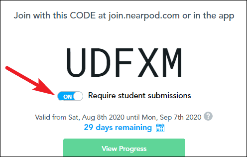 If the lesson has an activity that requires students’ responses, you can also turn on the toggle for ‘Require student submissions’. The students won’t be able to skip to the next slide until they have submitted the answers to the current slide with this mode on.