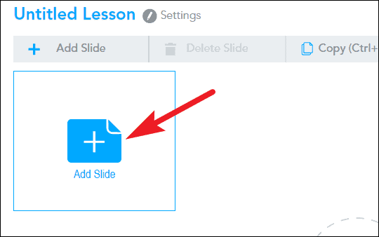 The screen for creating a lesson will open. Click on ‘Add slide’ to create a new slide.
