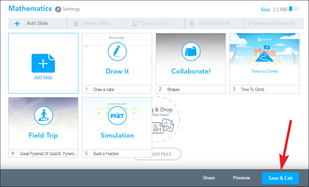 Once you have added all the slides, click on the ‘Save & Exit’ button to save the lesson. If you don’t save it, it will still appear as an unsaved lesson on your dashboard. But you need to save it to share it.