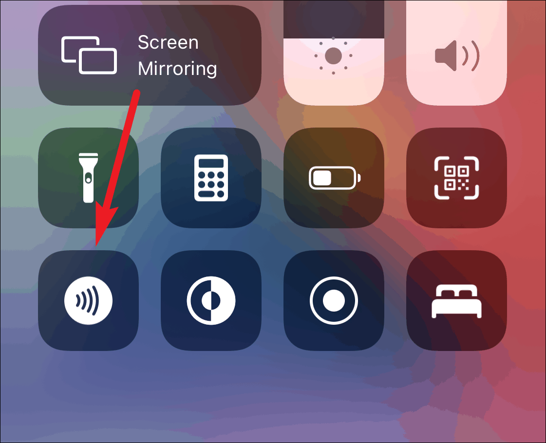 On iPhone X and older models, swipe down on the right side of the notch, or swipe up from the bottom of the screen (as per your model) to open the Control Center. Then, tap on the NFC tag reader and bring your iPhone near the tag.