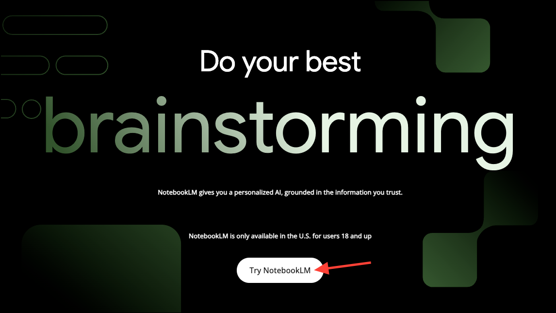 - To get started with NotebookLM, go to notebooklm.google and click on the 'Try NotebookLM' button.