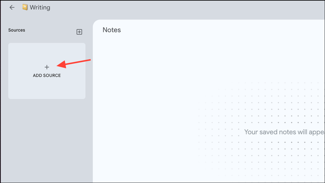 - It's time to add the sources to the notebook. Click the 'Add Source' button on the left.