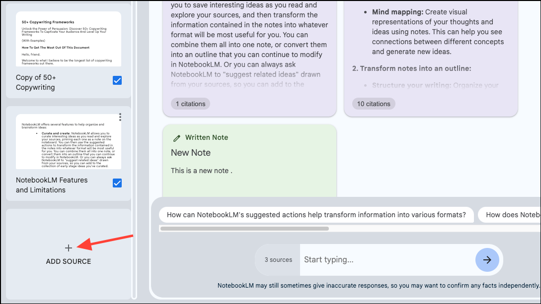 Working with Notes in NotebookLM