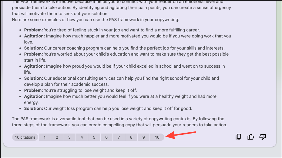 - You can click on '[N] citations' to expand them and then click on a citation number to view it in the source.