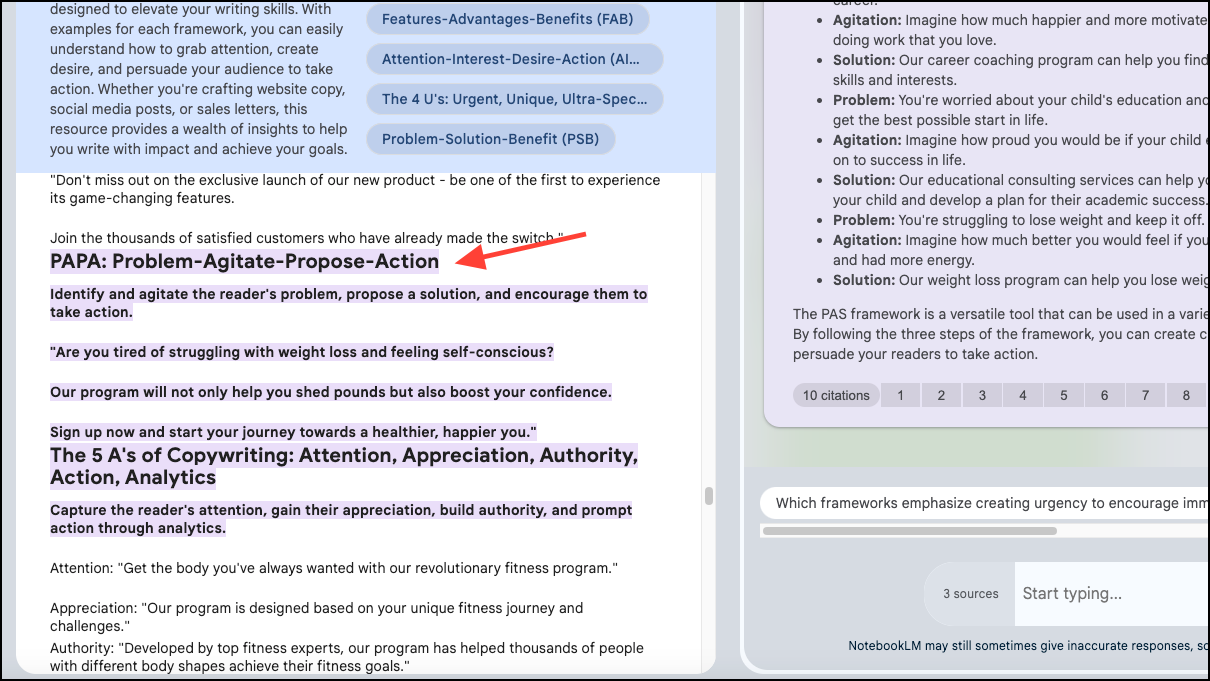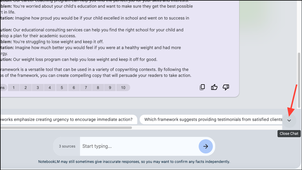 Using NotebookLM's Chatbot
