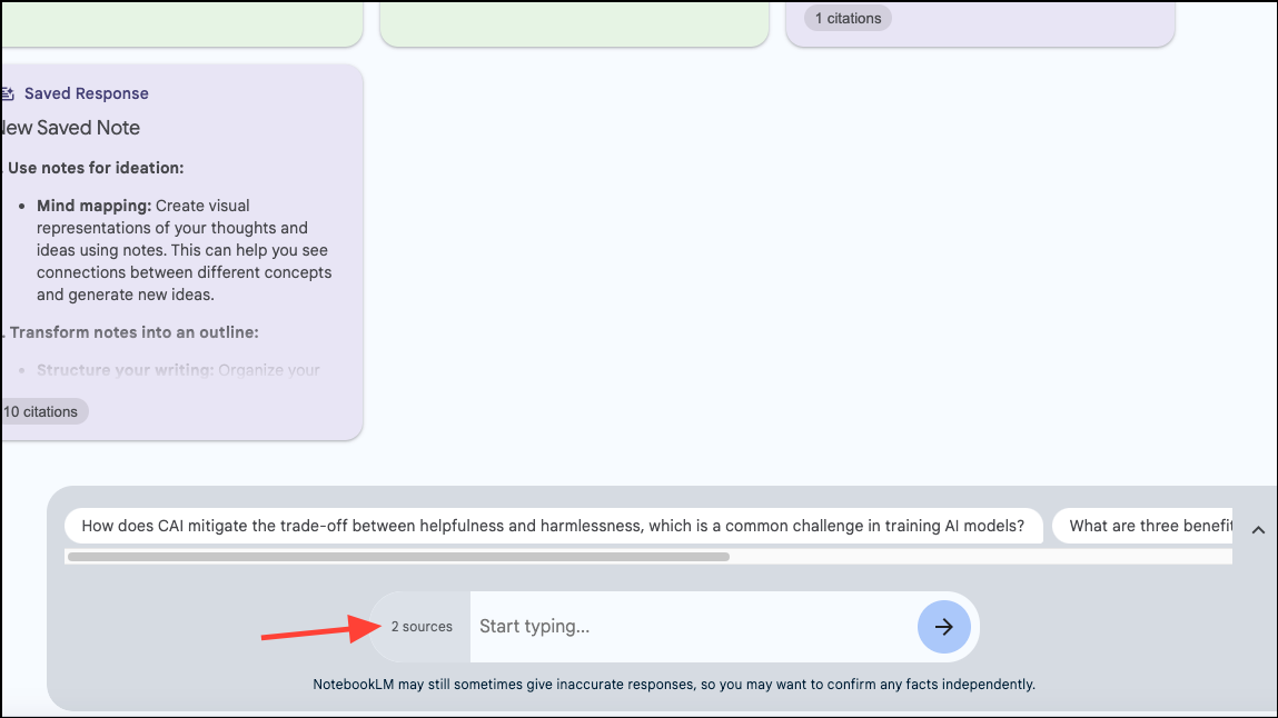 - NotebookLM will show some suggested questions on the right based on your sources. You can click on a suggested question or type your own and send it to the chatbot to get answers. You can ask it for summaries, glossaries, or any other type of questions from the text.