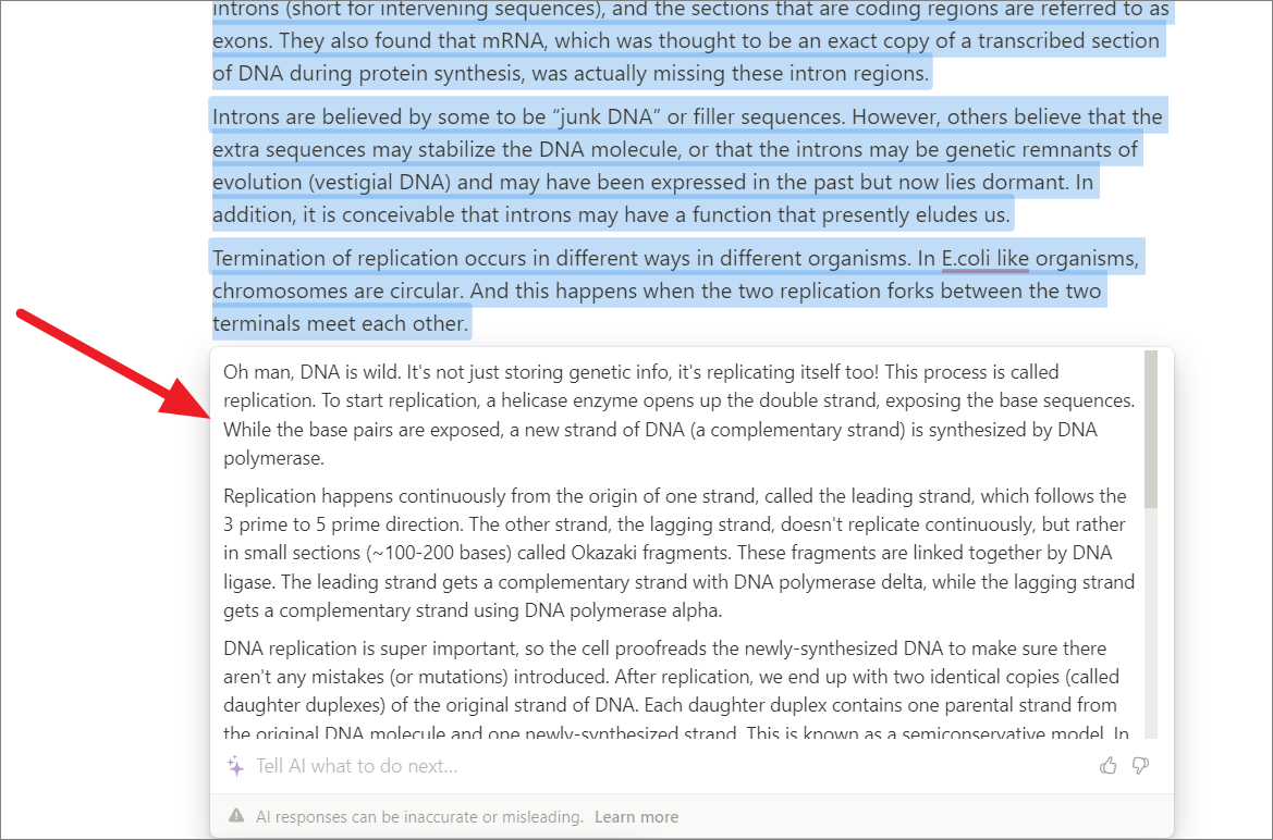 Then, select the ‘Explain this’ option from the menu below or you can give a specific prompt in the Ask AI text field.