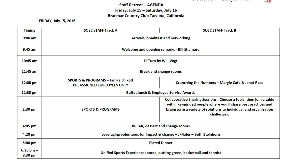 - Attend the Unified Sports Experience (bocce, putting green, basketball, and tennis)