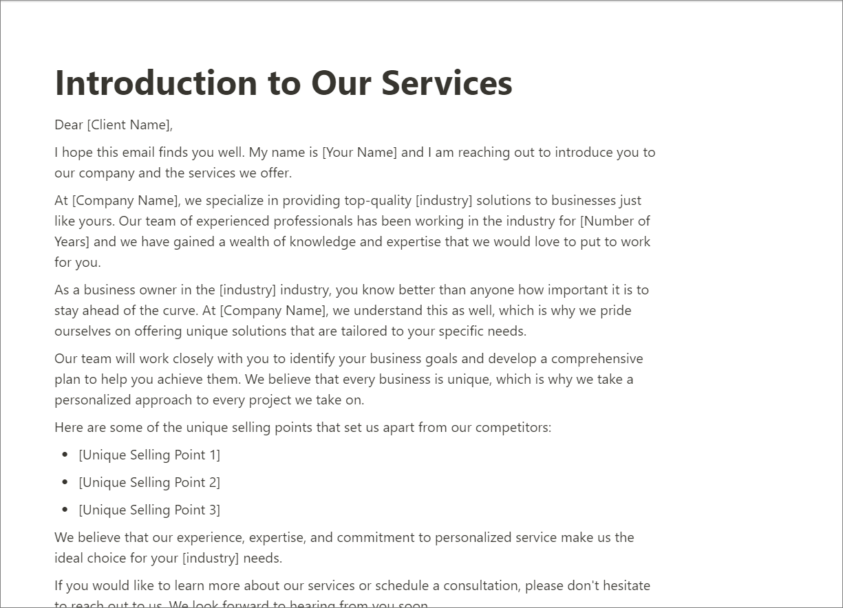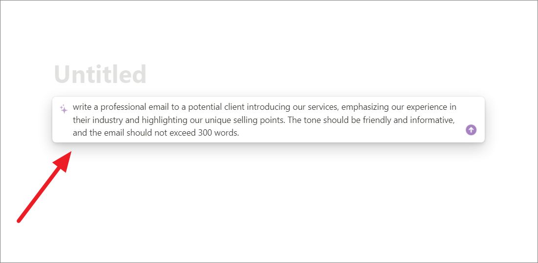 Example: Here’s another example: Instead of asking Notion AI to “write an email to a client,” you could provide more specific prompts such as “write a professional email to a potential client introducing our services, emphasizing our experience in their industry and highlighting our unique selling points. The tone should be friendly and informative, and the email should not exceed 300 words.”