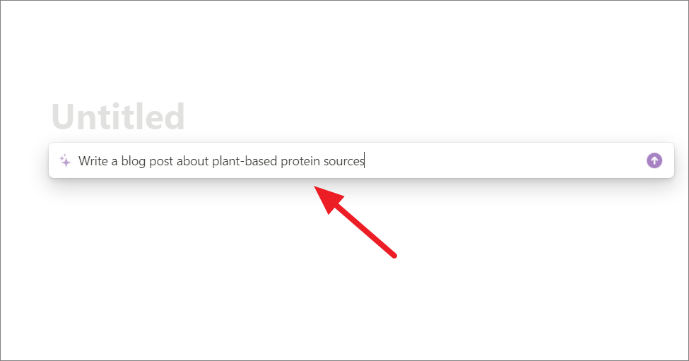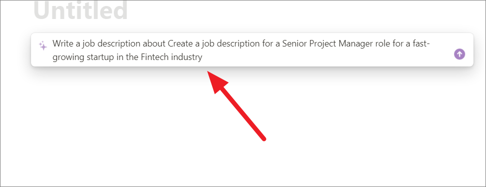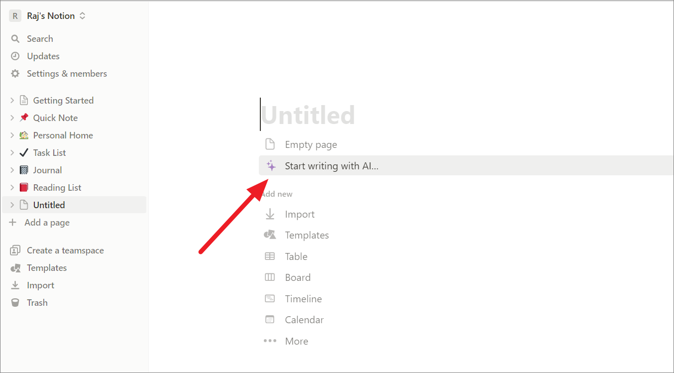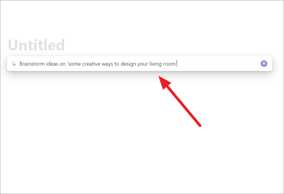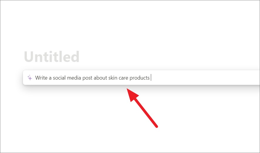 On the new page, you will see an AI text bar or input bar that says ‘Start writing with AI..’. Click on that to start typing your prompts or inputs.
