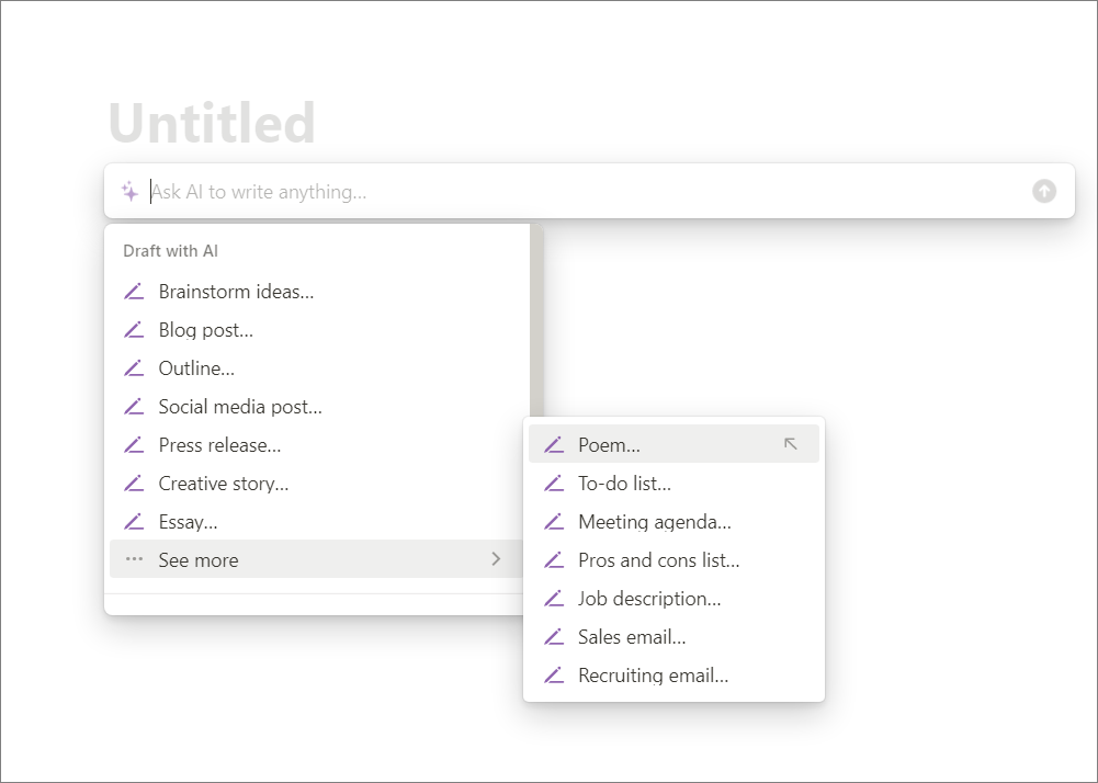 Just press Space on an empty page and input your prompts to start writing or you can ask AI in the middle of your writing to help finish the content.