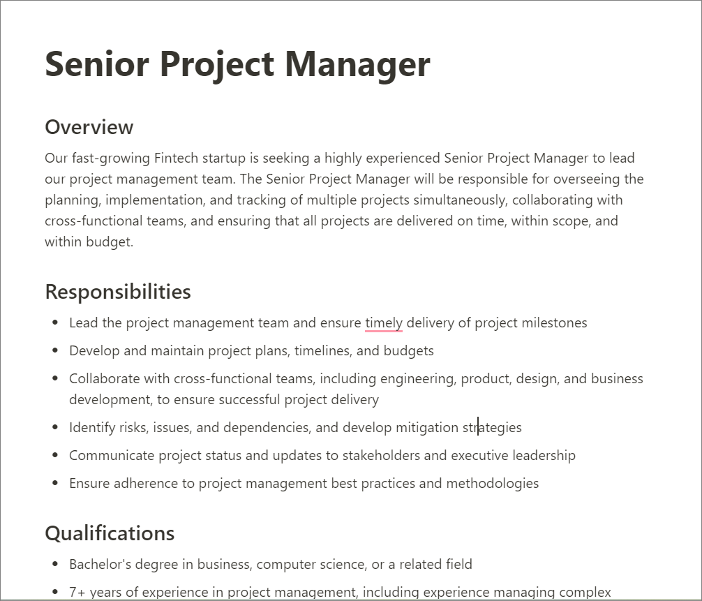 This option helps you create a job description for a position in your organization. To make the job description more specific, you can provide the required qualifications, responsibilities, and other details.