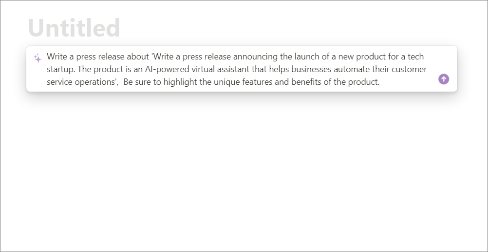 Example prompt: Write a press release announcing the launch of a new product for a tech startup. The product is an AI-powered virtual assistant that helps businesses automate their customer service operations, Be sure to highlight the unique features and benefits of the product.