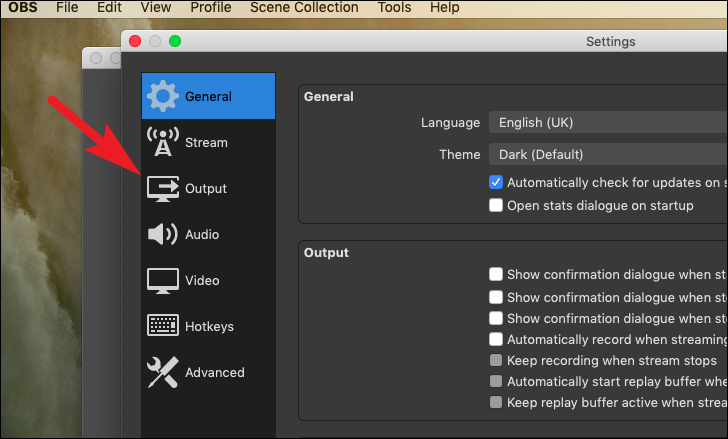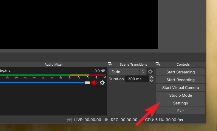 Now, before you start recording you need to make sure you are outputting the file in your desired folder on the system. To do so, click on the ‘Settings’ option present under the ‘Controls’ section in the left bottom section of the screen. This will open a separate OBS window on your screen.