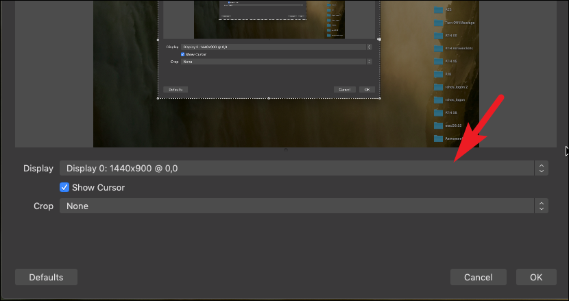 Now, if you have more than one display connected to your system, select the one you wish to record by selecting from the drop-down following the ‘Display’ option. Also, uncheck the checkbox preceding the ‘Show Cursor’ option’ if you do not wish to display the cursor.