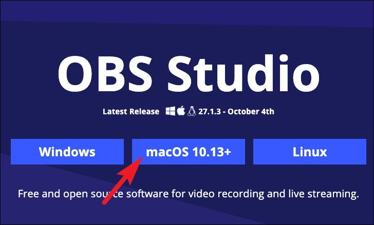 First, head to obsproject.com using your preferred browser. Then, click on the ‘macOS’ tile. This will redirect you to the OBS download webpage and your download should start automatically.