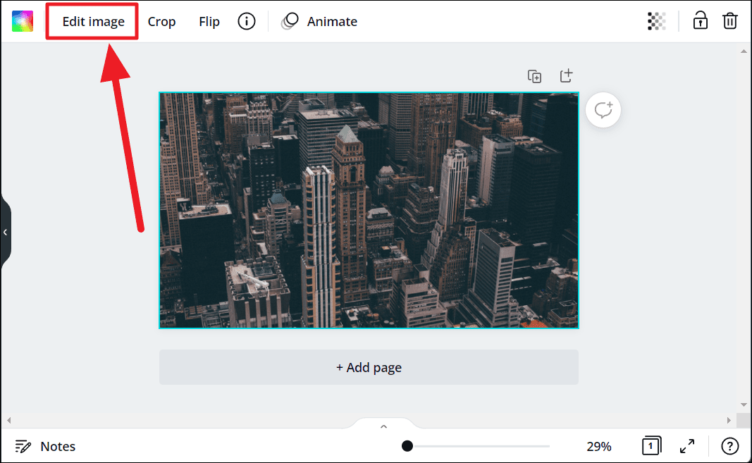 Launch the Canva application or the web client and open the image you wish to apply the paint effects on. Now, select the image and click the ‘Edit image’ option right above the selected image.
