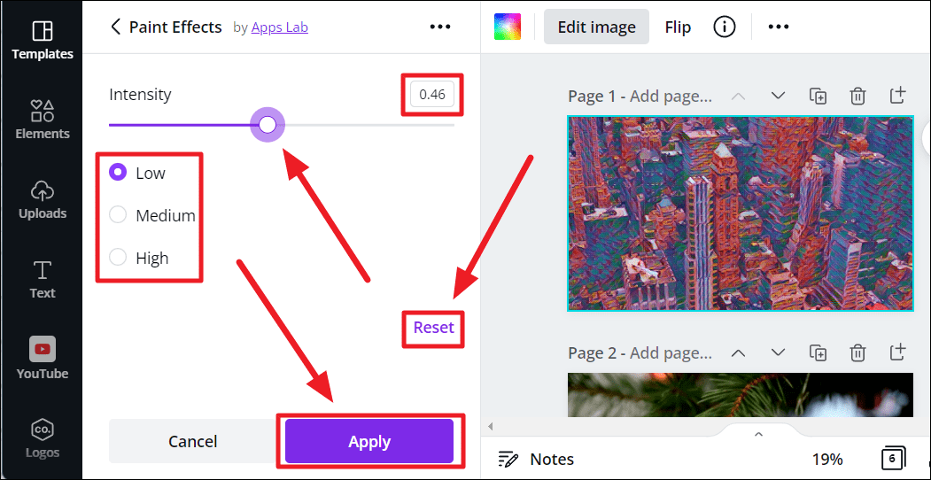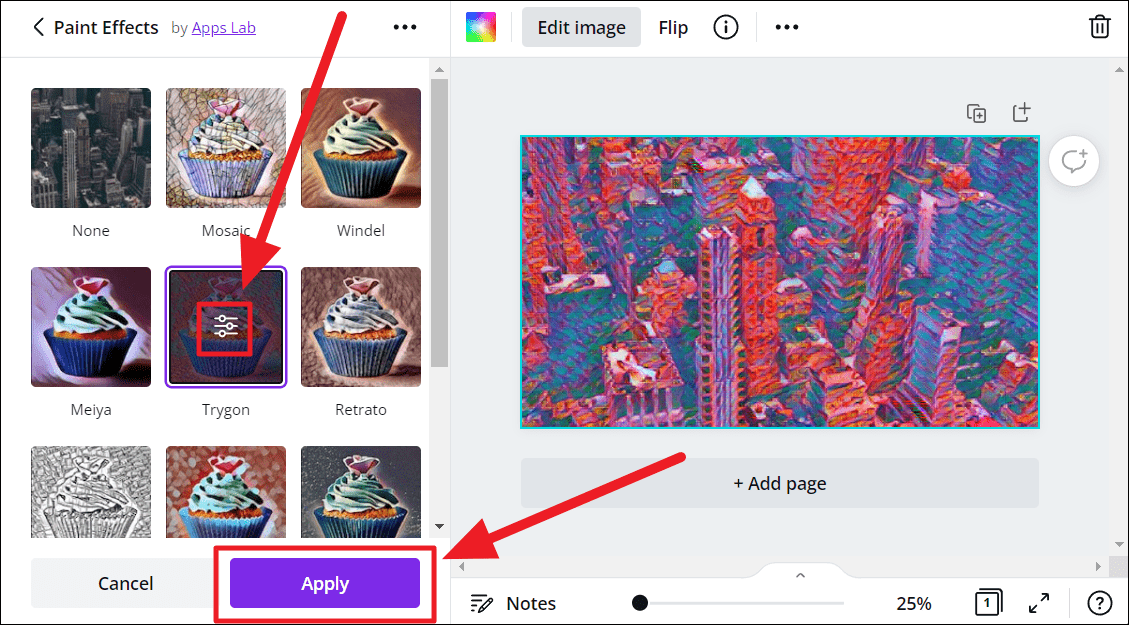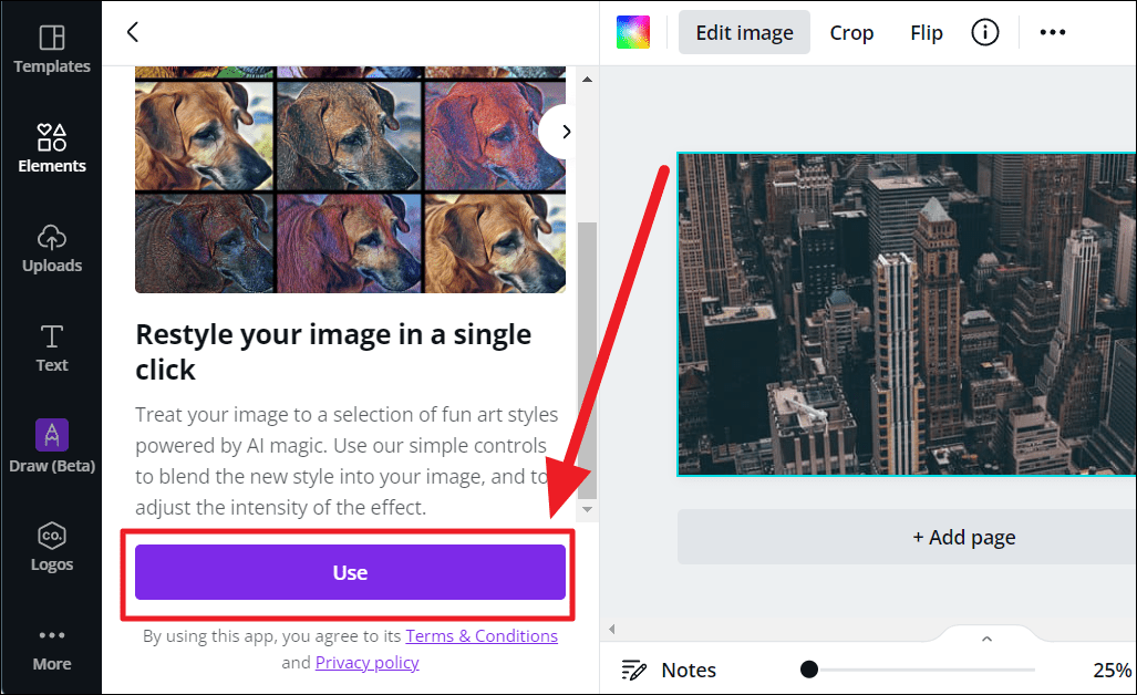 ‘Paint Effects’ is an AI feature on Canva, powered by Apps Lab. To use it, you must first connect with the feature.