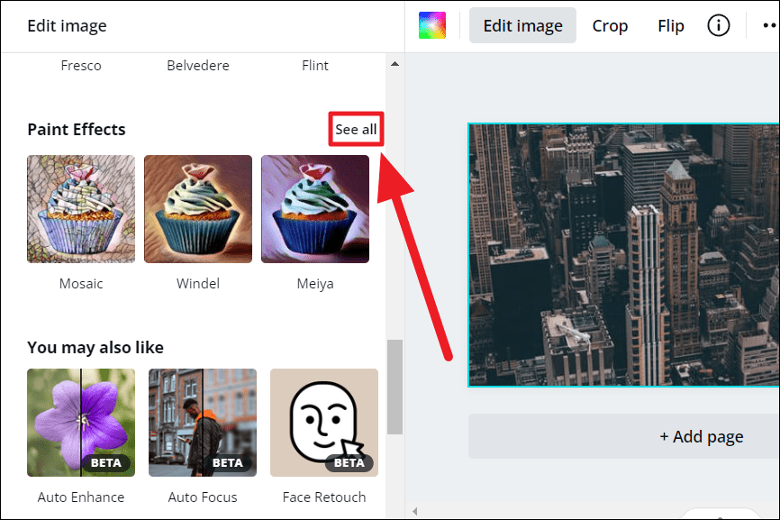 Scroll through the ‘Edit image’ options to find the ‘You may also like’ section. Now, select ‘Paint Effects’ under this section.