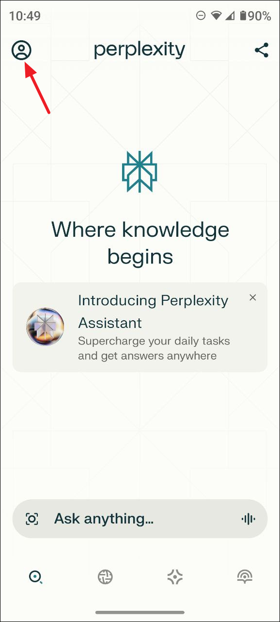 - Open Perplexity Assistant and tap on the profile icon at the top left to open the Settings page.