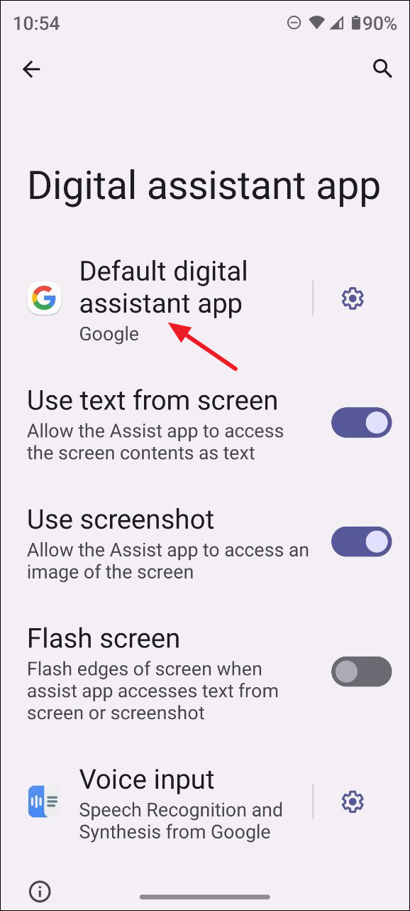- Tap on 'Default digital assistant app' to select the default assistant on your device.