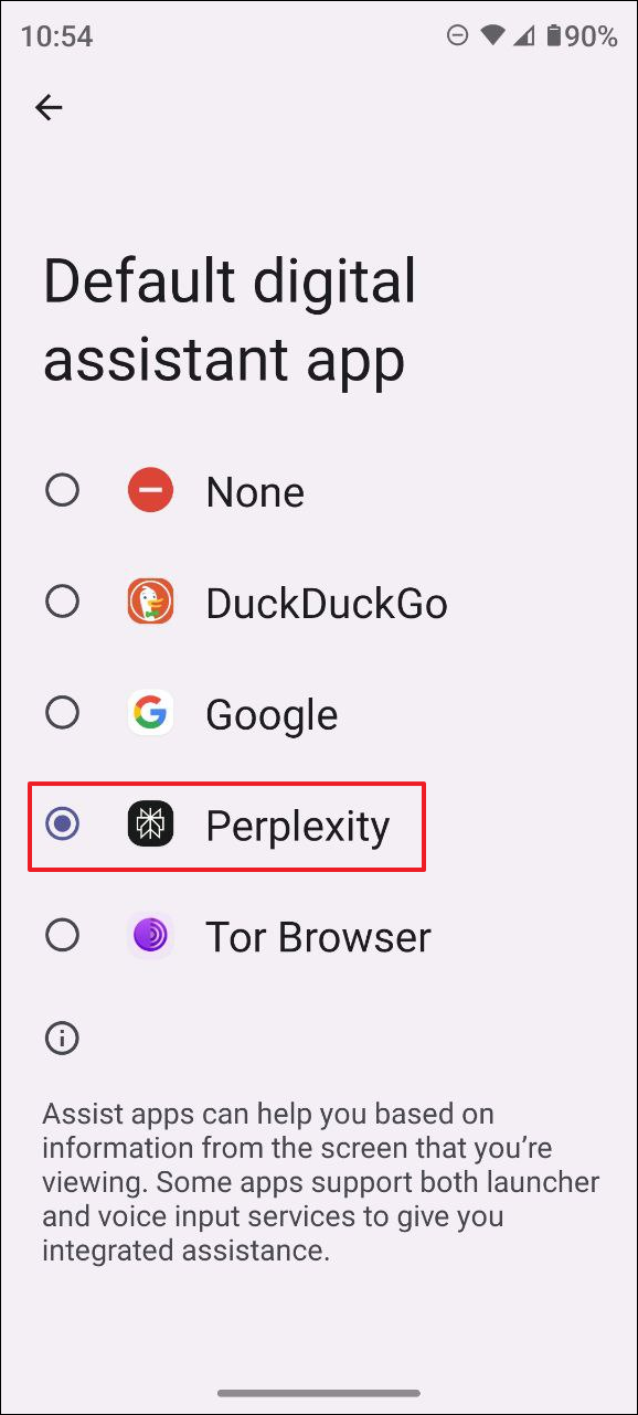 Setting Perplexity AI as the default assistant