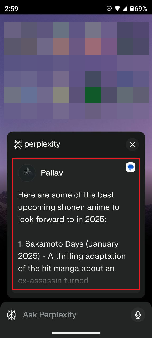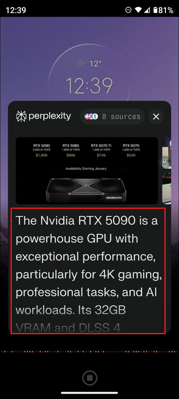 - Activate Perplexity AI assistant from your home screen and give it a command like