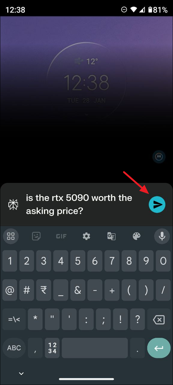 - When you ask the AI assistant to perform actions like writing an email or a message, it will show you a text box. Tapping on it will open up the required app, such as Gmail or Messages.