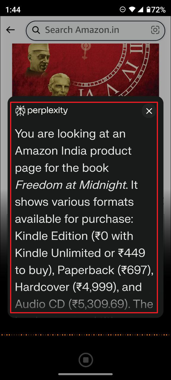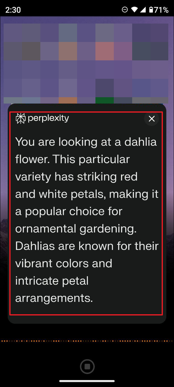 - After analyzing the image from your phone's camera, Perplexity AI will provide you with information about it.
