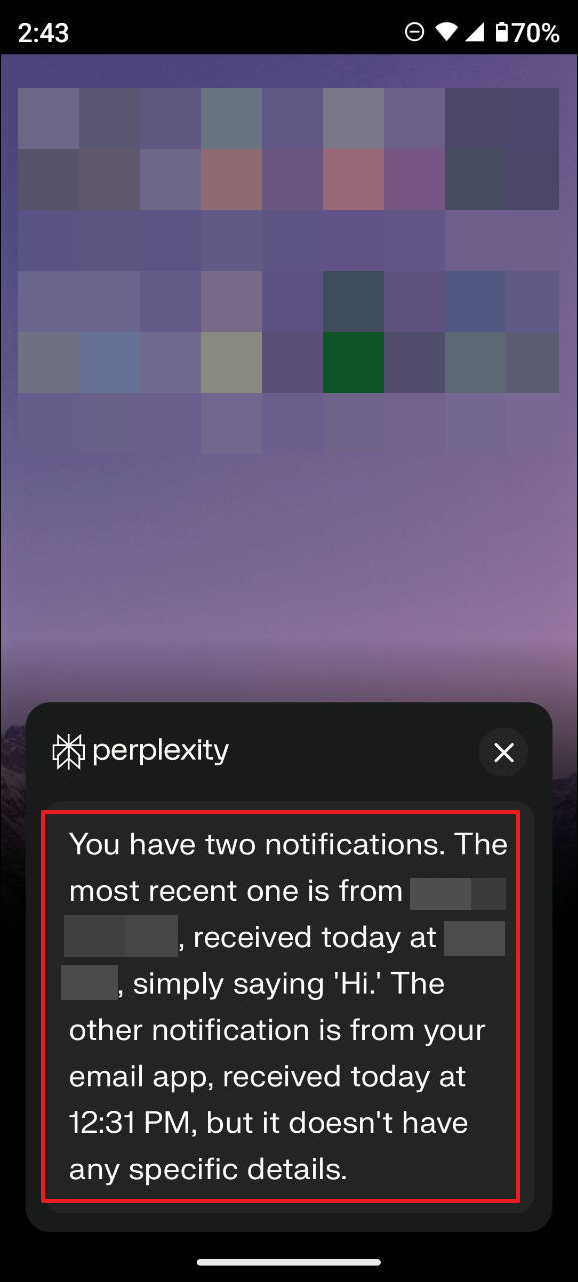 - Perplexity AI Assistant can also help you get a summary of your notifications, which can be handy if you get a lot of them. Just ask it