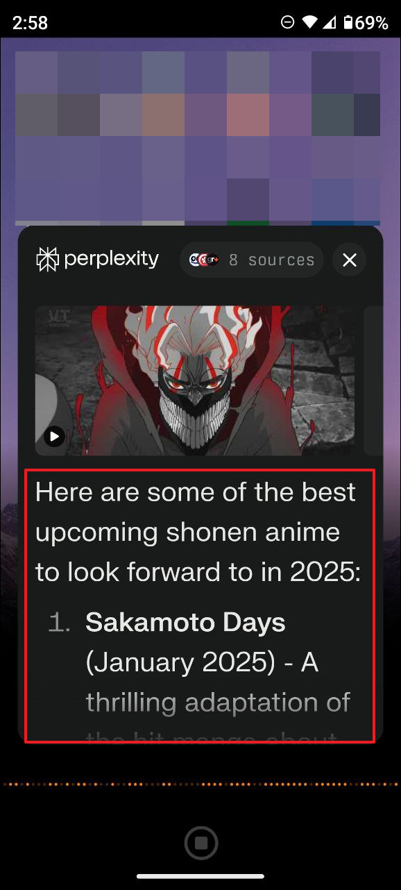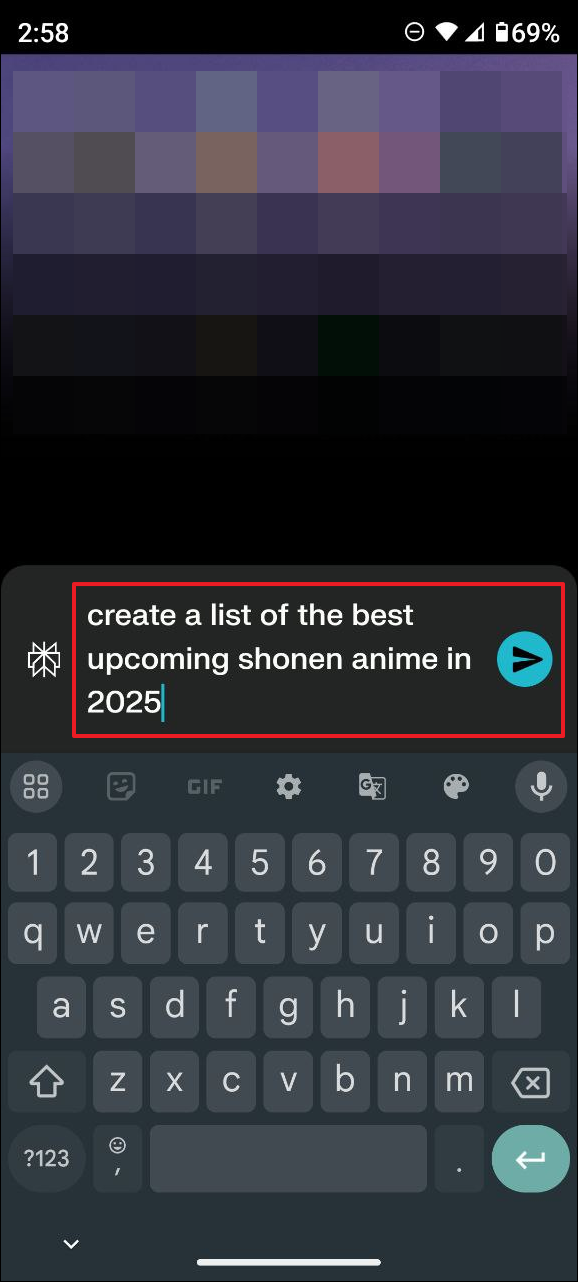 create a list of the best upcoming shonen anime in 2025. - Wait for a few seconds until the AI assistant shows you the results. Then, go down and type in your next command.