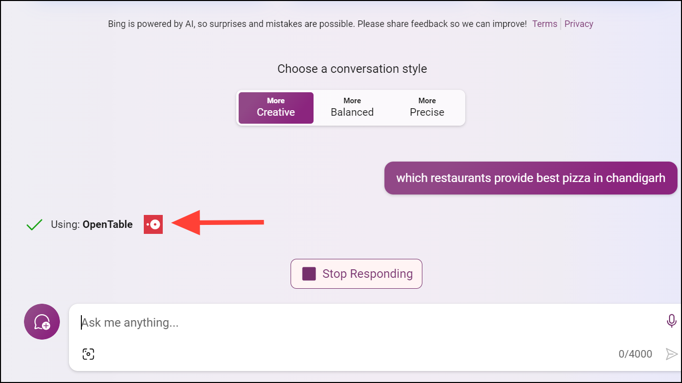 - After enabling the plugins, type your query and send it to Bing Chat. If it requires the use of the plugin (and the plugin is enabled), it'll automatically kick into action.