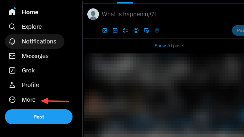 - Log in to your X account using a desktop web browser and click on 'More' on the left.