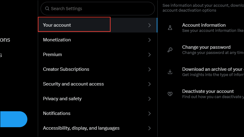 - Next, click on 'Your account' in the sidebar.