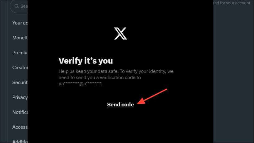 - Then click on 'Send code' and the platform will send a code to your email address for verification.