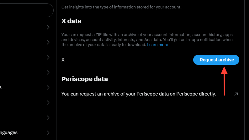 - Now you need to wait for X to send you an email notifying you that your data is ready for download. While the platform says this can take up to 24 hours, it can take even more time.