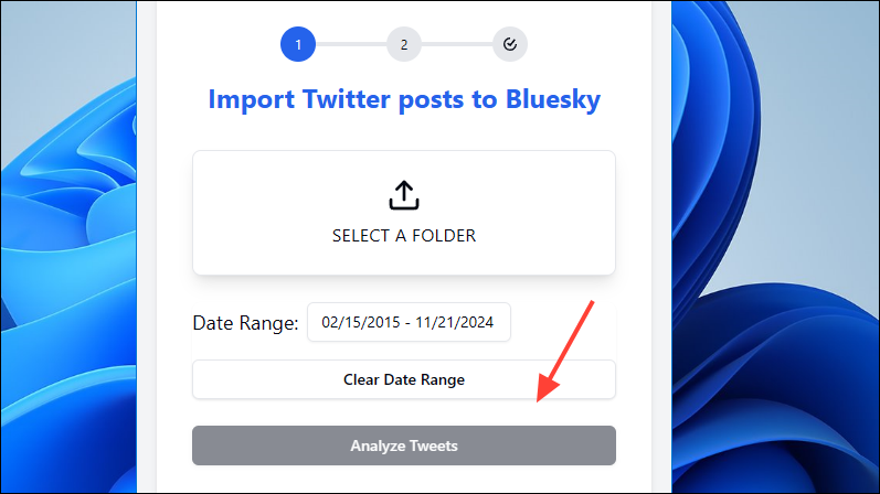 - After setting the date range, click on the 'Analyze Tweets' button and wait for the extension to inform you about the number of tweets it can import and the replies and retweets that will be excluded.