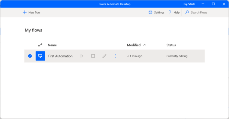 With Power Automate Desktop, you can build flows to automate tasks. These flows can be created using pre-built actions or by recording a series of steps that you perform manually. Here's how you can create a new flow: