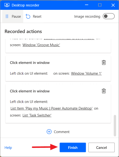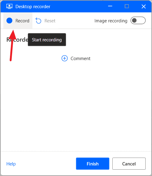 - Once you've completed the actions, restore the Desktop recorder and click Finish.