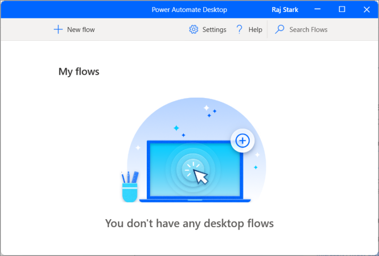 Once set up, the Power Automate Desktop window will open, and you're ready to create your automation flows.