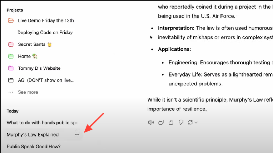 - To move an existing chat into a Project, click on the three dots next to the name of a chat.