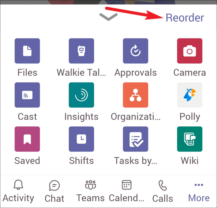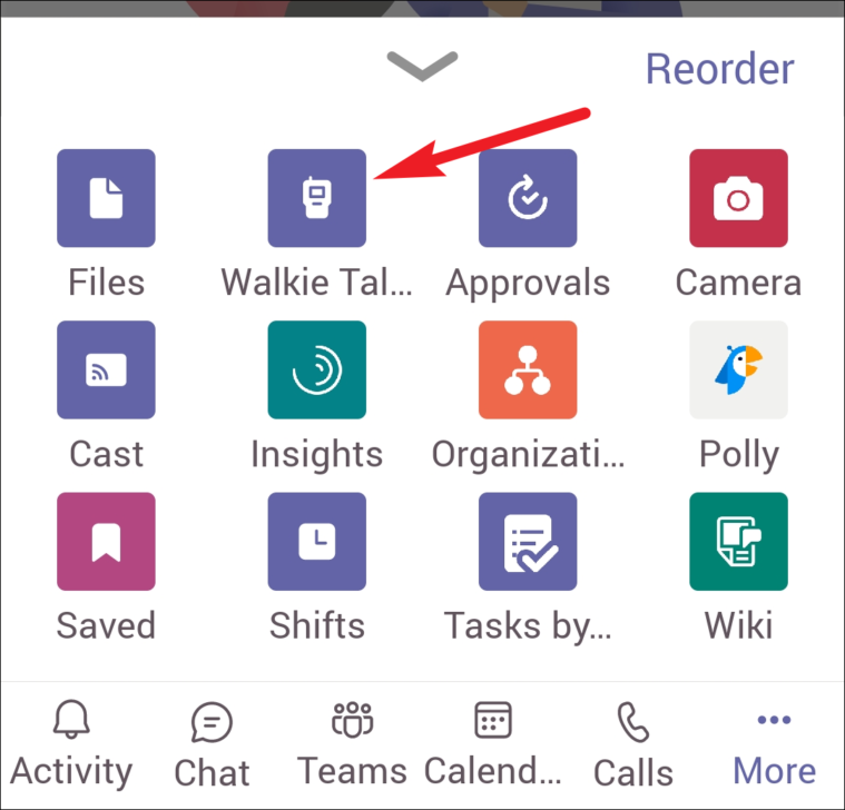 You can also reorder your apps to arrange Walkie Talkie on the menu bar. From the More menu, tap the option for ‘Reorder’.