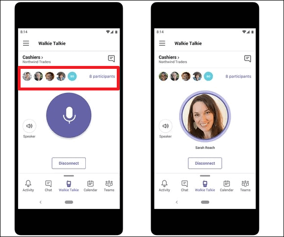 The Walkie Talkie feature adds a ‘Walkie Talkie’ tab to the Teams mobile app. Using the Walkie Talkie, users can push the button to communicate securely over the cloud just like a real walkie-talkie. But unlike a real walkie-talkie, this connection is secure as it’s not analog. No one can tune into your channel and eavesdrop.