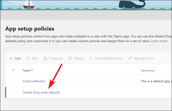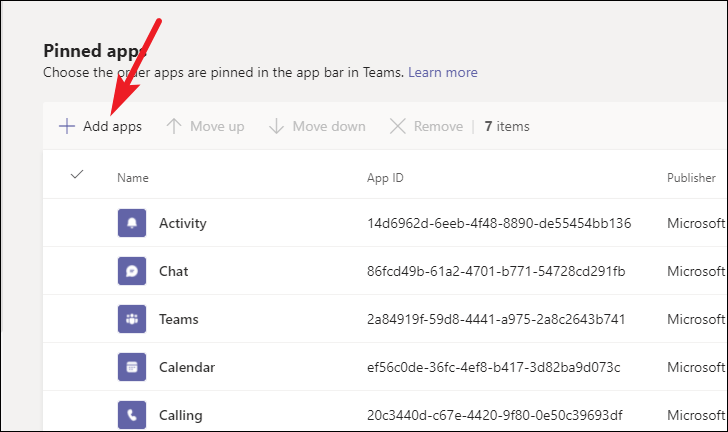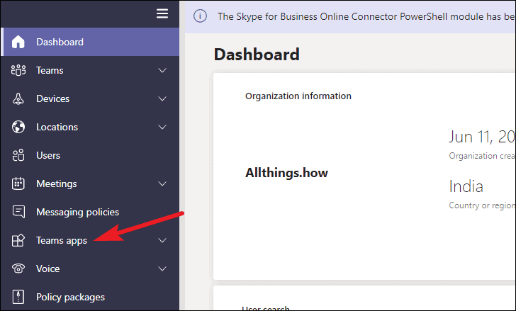 From the navigation pane on the left, go to ‘Teams apps’.
