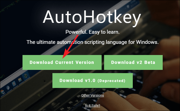 You first need to install AutoHotkey for this workaround. Go to autohotkey.com and click the ‘Download Current Version’ button. Then, run the .exe file to install AutoHotkey and follow the steps on the screen to install.