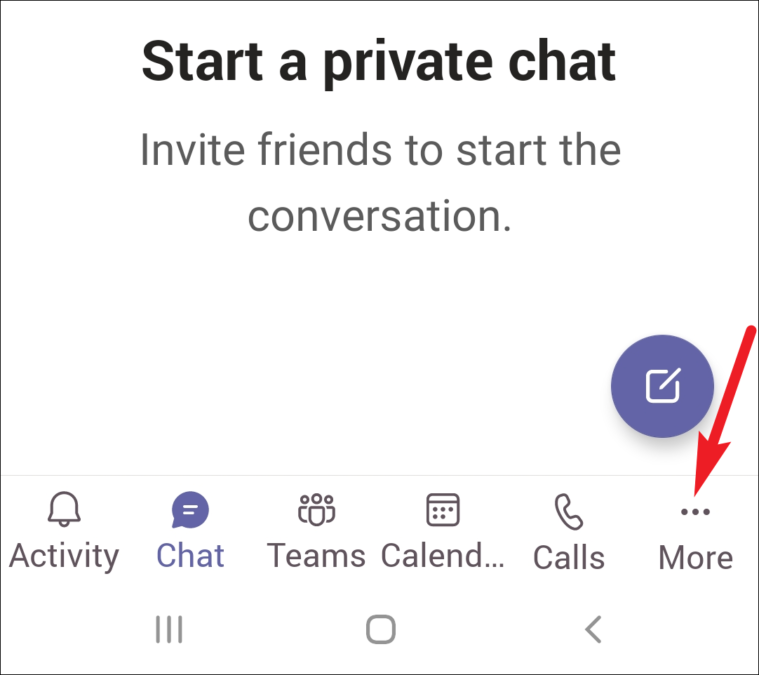 Open the Microsoft Teams app on your mobile. Now, if the admin arranged the walkie-talkie tab to appear on the menu bar, you’ll be able to see it there. Otherwise, tap ‘More’.