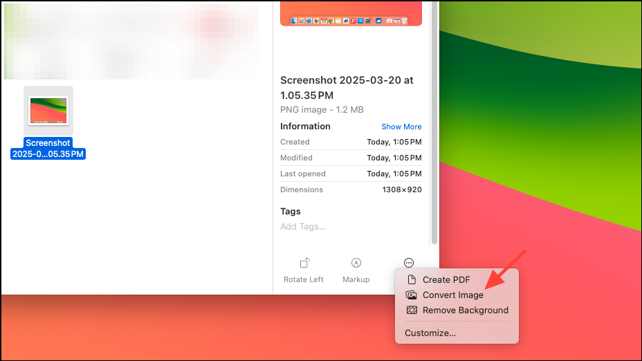 This method is ideal for quick conversions of common image formats directly from Finder, eliminating the need to open Preview or other image-editing software.