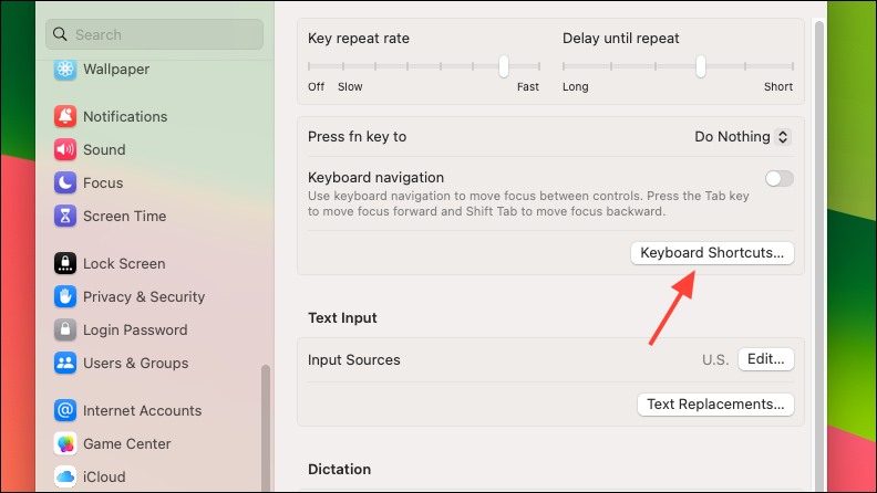 Step 1: Open System Settings and navigate to Keyboard > Keyboard Shortcuts.