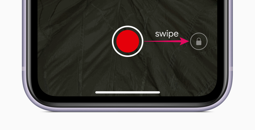 Releasing the shutter button will stop the recording. If you wish to continue recording without keeping your thumb pressed, swipe your thumb towards the “lock icon” on the right edge of the screen and release.